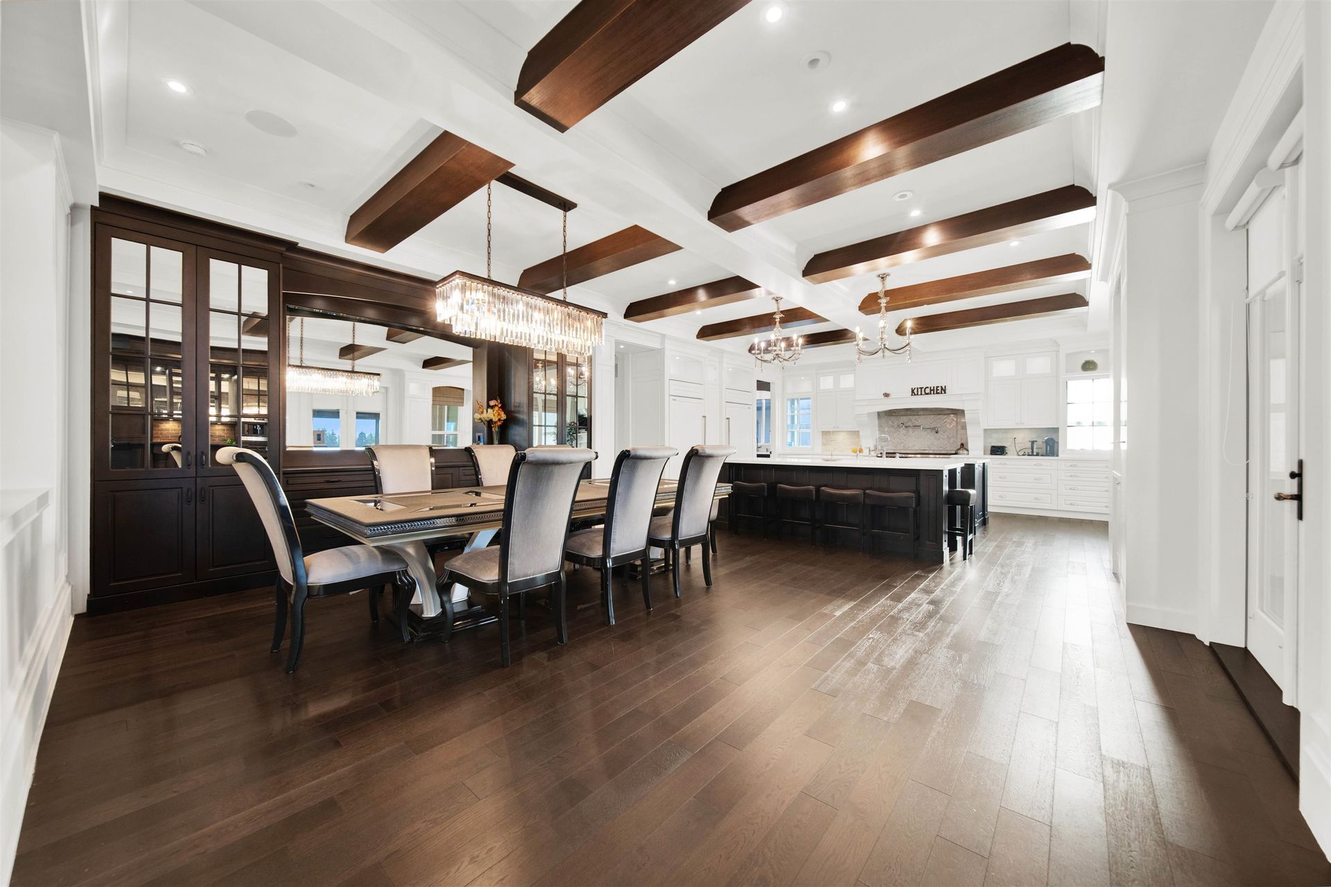 Timeless European architecture with beautiful stone details sets the tone of sophistication in this design marvel. Over 6,600sqft of luxury living over 3 levels, this magnificent home is built for entertaining! Rich millwork, marble & limestone accents, wood floors and transitional interior design. Open-concept Great Room with double height ceilings, spacious Dining Room with a full bar for dinner parties, and a stunning double-island Chef's Kitchen. French doors lead to the expansive covered deck with privacy screens. 3 spacious bedrooms above including the glamorous Primary Bedroom with a dream closet. Lower level finished with a rec. room, bar, theatre, gym and sauna, and 2 guest bedrooms. Situated on a 12,964sqft property, easy access to Southridge, Morgan Elem, Grandview Sec. schools.