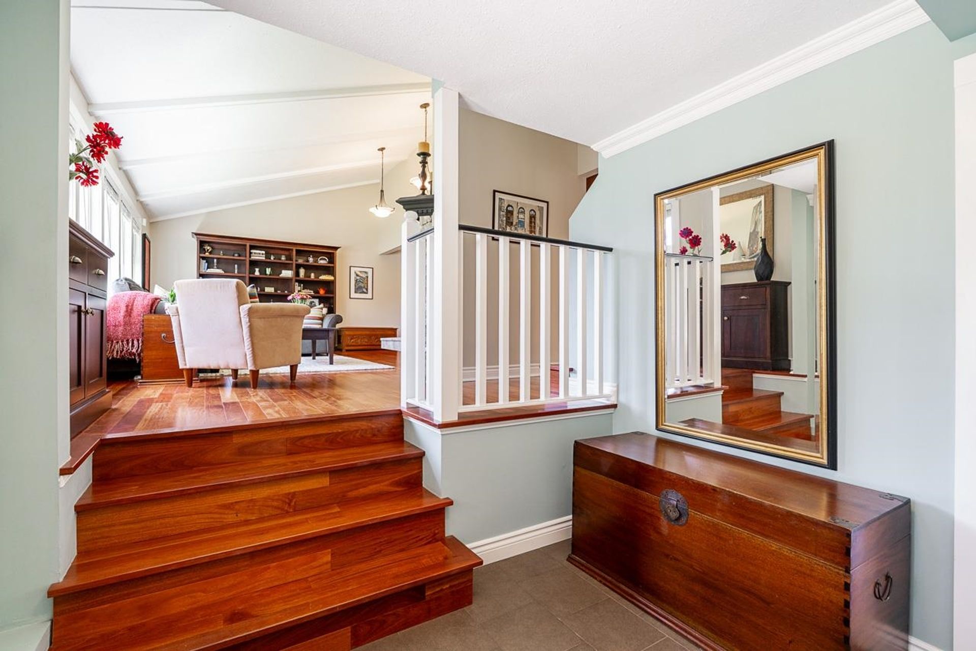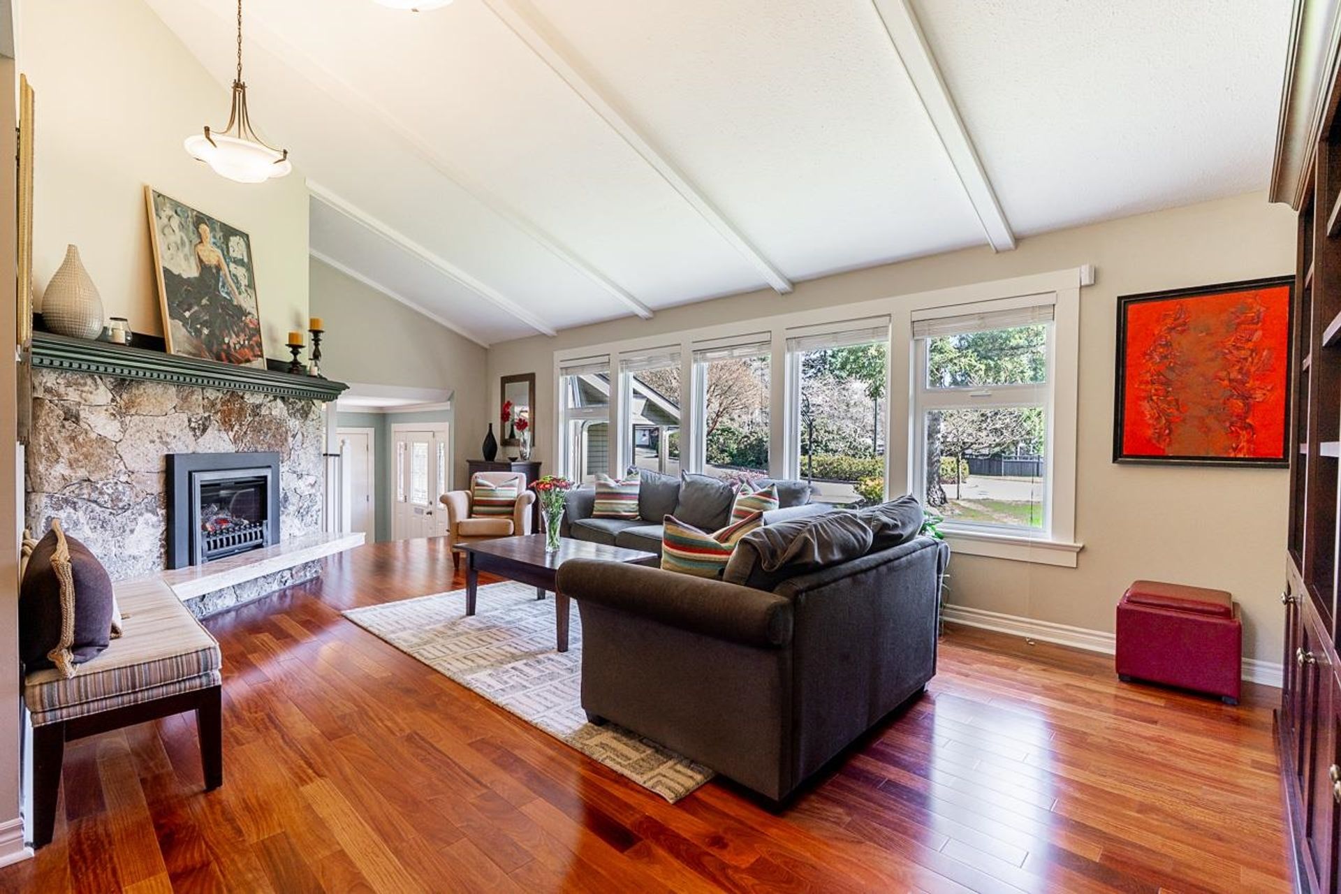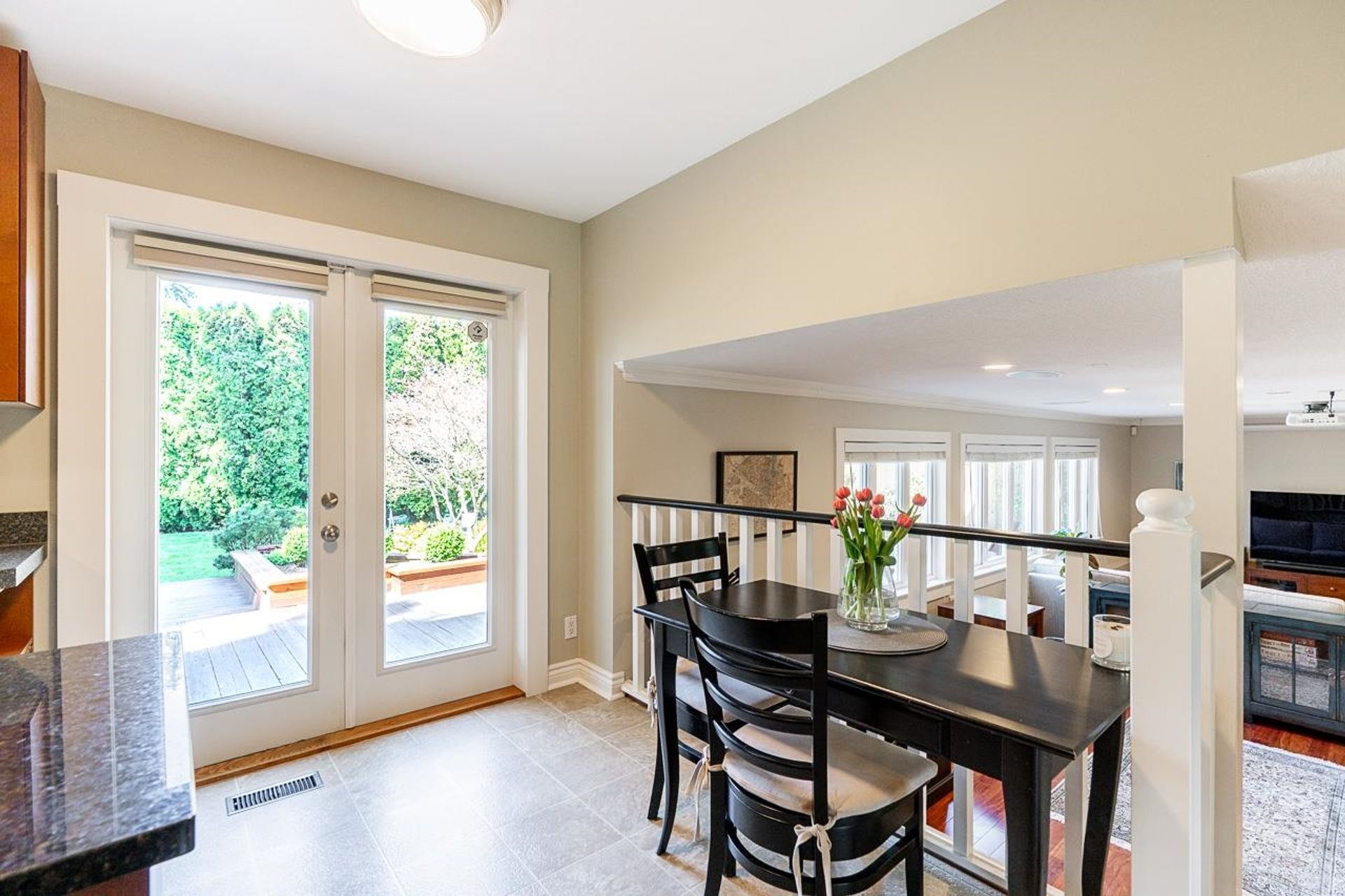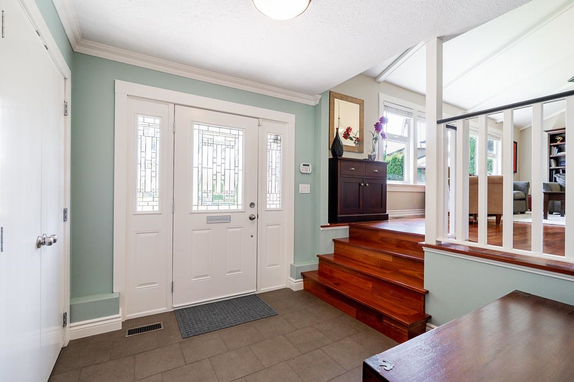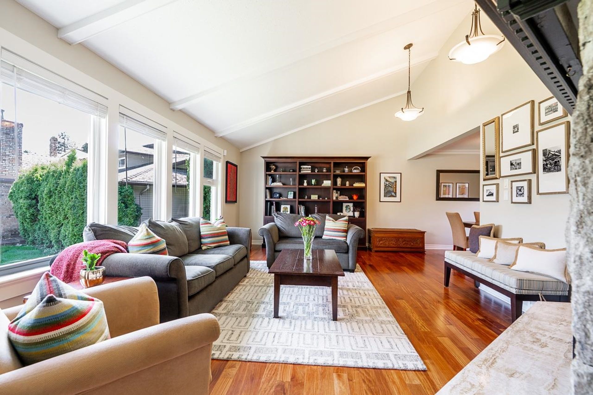Lovely 2,300 sf 3-level split home on a 9,678 sf lot with convenient lane access, nestled on a quiet cul-de-sac. Thoughtfully updated and meticulously maintained, this home offers a fantastic floor plan with beautiful Santos mahogany hardwood throughout. Enjoy seamless flow from the formal vaulted living and dining areas to the bright eat-in kitchen, overlooking a spacious family room and private backyard. Upstairs features 3 beds, 2 full baths & den (potential 4th bed). Oversized laundry and ample storage add convenience. Professionally landscaped yard with patios for dining, lounging, and play. Recent updates include roof, fencing, and A/C. Walk to coveted schools HT Thrift and Semiahmoo (IB Program). Close to parks, recreation, beaches, shops, and dining - an exceptional lifestyle!