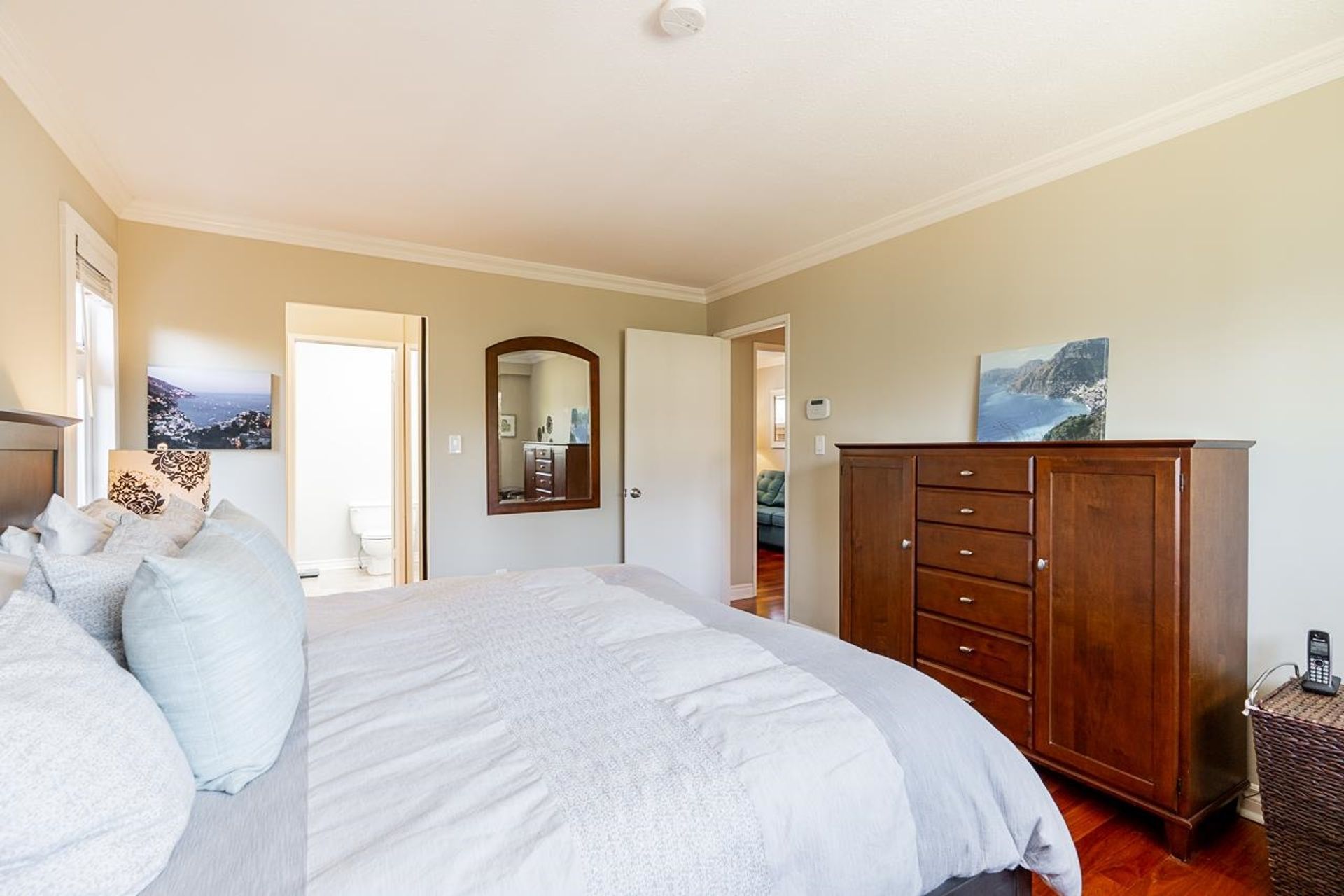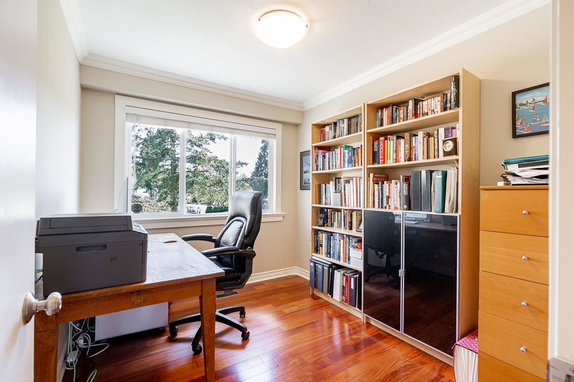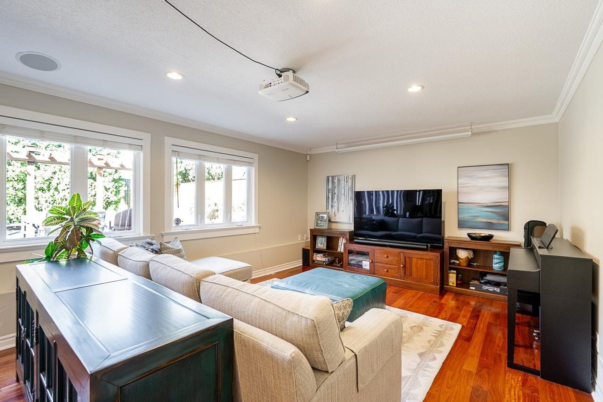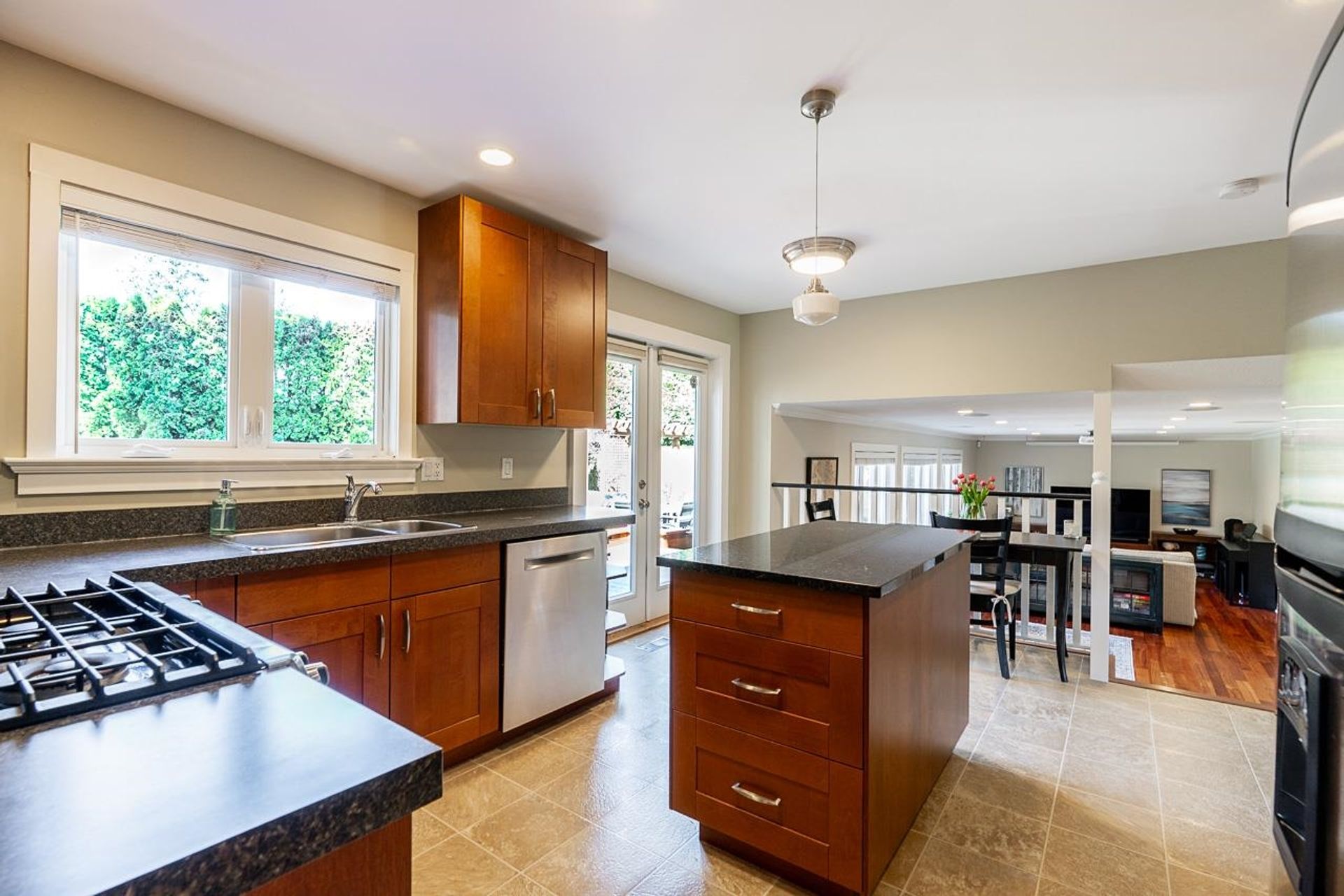 Lovely 2,300 sf 3-level split home on a 9,678 sf lot with convenient lane access, nestled on a quiet cul-de-sac. Thoughtfully updated and meticulously maintained, this home offers a fantastic floor plan with beautiful Santos mahogany hardwood throughout. Enjoy seamless flow from the formal vaulted living and dining areas to the bright eat-in kitchen, overlooking a spacious family room and private backyard. Upstairs features 3 beds, 2 full baths & den (potential 4th bed). Oversized laundry and ample storage add convenience. Professionally landscaped yard with patios for dining, lounging, and play. Recent updates include roof, fencing, and A/C. Walk to coveted schools HT Thrift and Semiahmoo (IB Program). Close to parks, recreation, beaches, shops, and dining - an exceptional lifestyle!