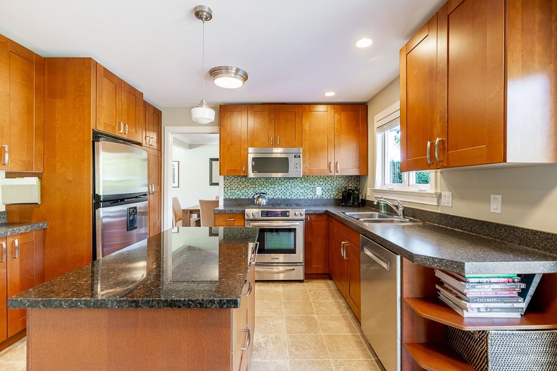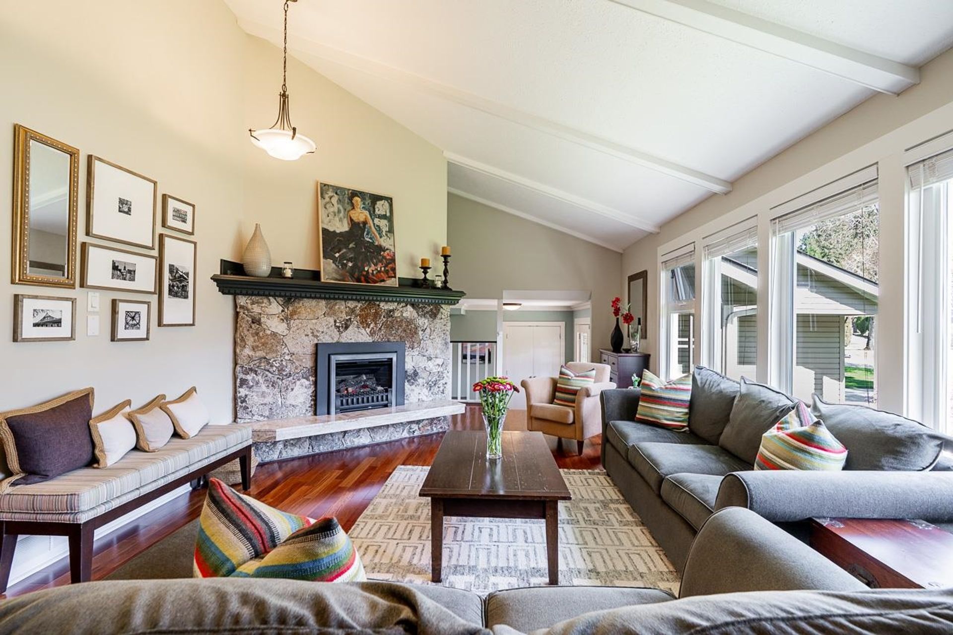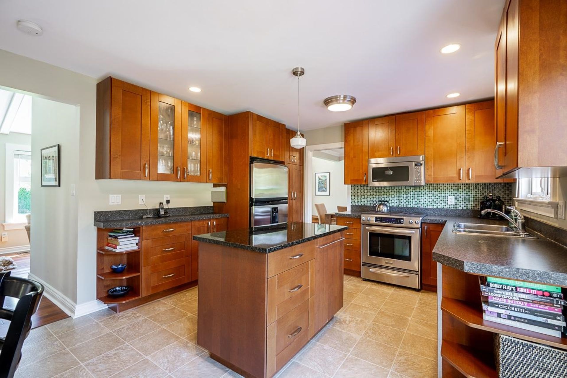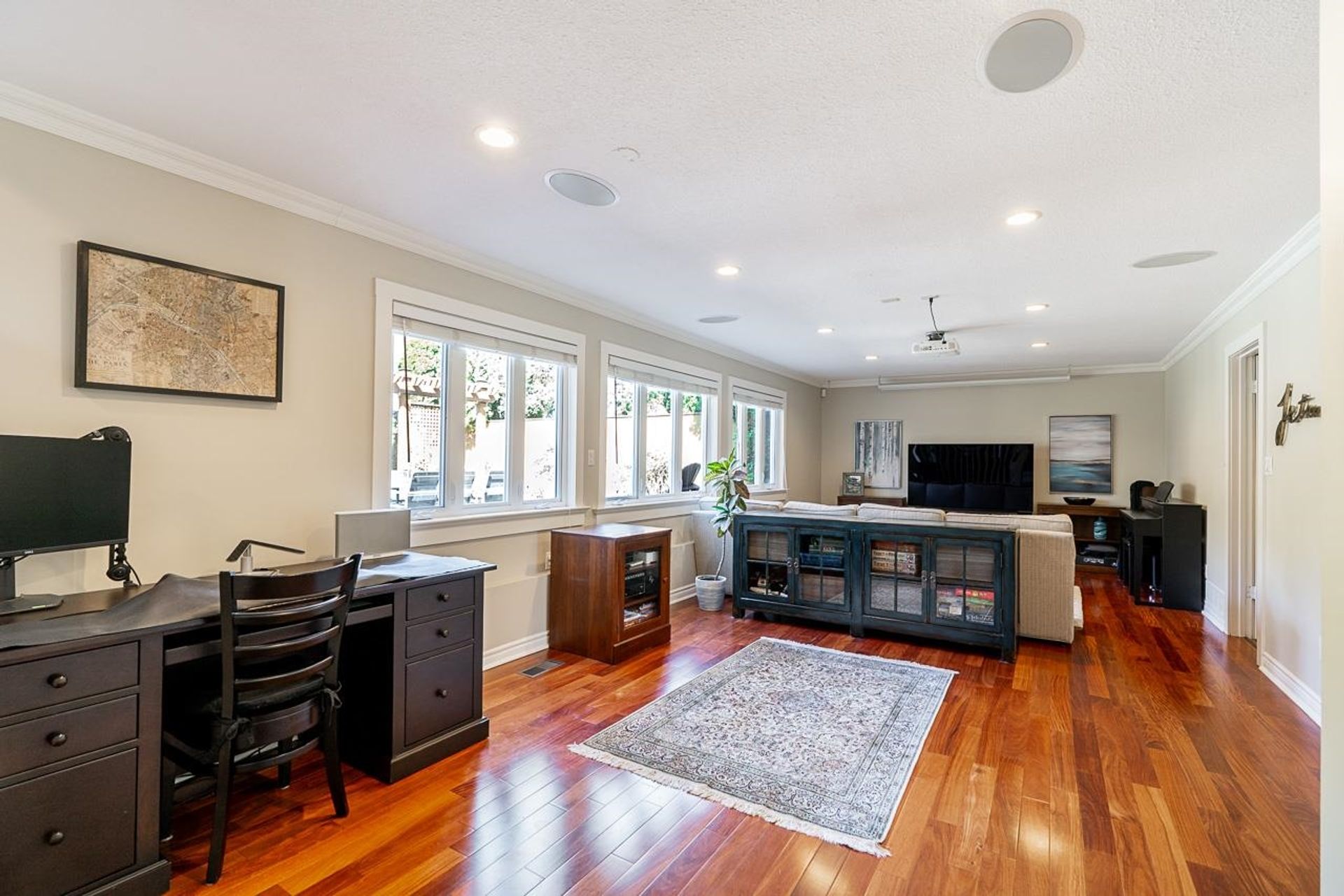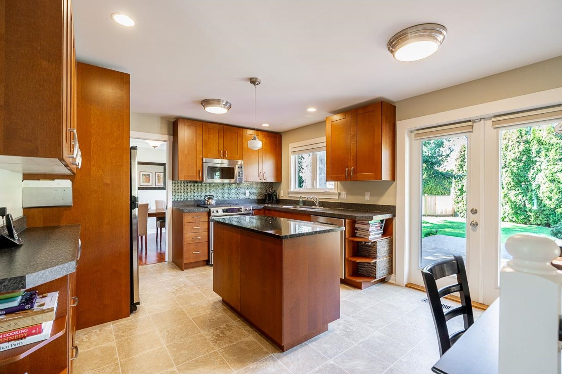 Lovely 2,300 sf 3-level split home on a 9,678 sf lot with convenient lane access, nestled on a quiet cul-de-sac. Thoughtfully updated and meticulously maintained, this home offers a fantastic floor plan with beautiful Santos mahogany hardwood throughout. Enjoy seamless flow from the formal vaulted living and dining areas to the bright eat-in kitchen, overlooking a spacious family room and private backyard. Upstairs features 3 beds, 2 full baths & den (potential 4th bed). Oversized laundry and ample storage add convenience. Professionally landscaped yard with patios for dining, lounging, and play. Recent updates include roof, fencing, and A/C. Walk to coveted schools HT Thrift and Semiahmoo (IB Program). Close to parks, recreation, beaches, shops, and dining - an exceptional lifestyle!