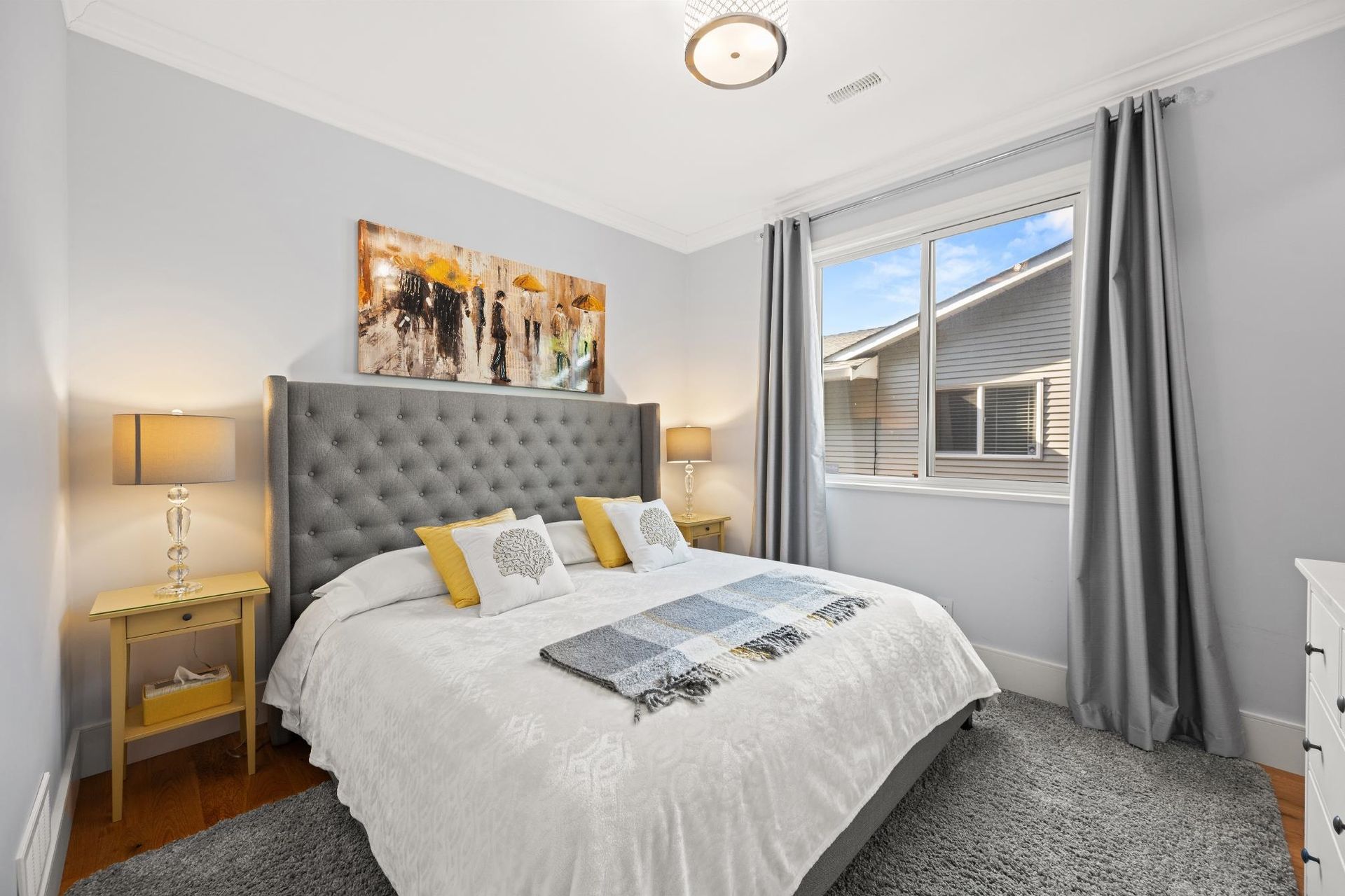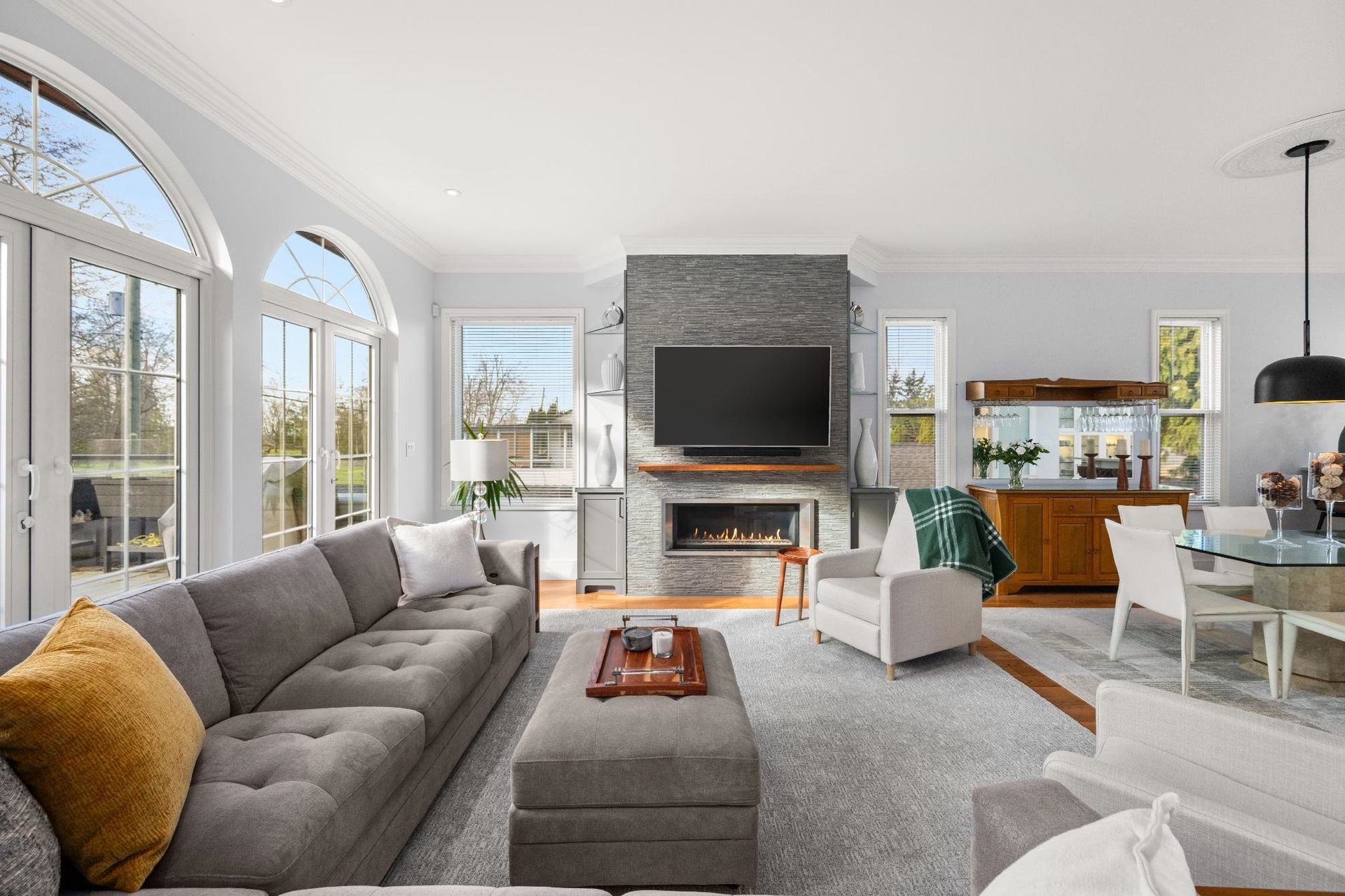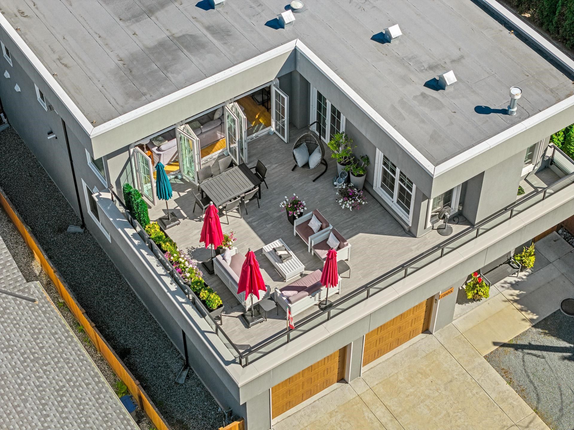 Stunning custom-built home offering 3,230 SF on a 6,200 SF lot in Pacific Douglas, overlooking Peace Arch Park. Upper main floor features 10-ft ceilings with skylights, is surrounded by windows, and opens to 800+ SF of decks. Enjoy open living, dining, and kitchen with a separate prep and pantry area, plus a home office, all showcasing quality custom finishings and exceptional attention to detail. The impressive primary suite includes a fireplace, spa-like ensuite, and spacious walk-in closet. Downstairs offers 3 ensuited bedrooms and a recreation room with sauna—ideal for multigenerational living. Walk out to a beautifully landscaped yard with garden beds and a potting shed. Oversized garage with flex space, perfect for a workshop. An exceptional balance of quality, space, and lifestyle!